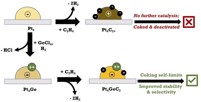 Li, G.; Chiu, S.; Morgan, H. W. T.; Fuchs, A. T.; Isakov, A.; Poths, P.; Zhang, Z.; Alexandrova, A. N.; Anderson, S. L. Size-dependent effects of Ge addition on the coking and sintering tendency of PtnGex/alumina (n=4,7,11) model catalysts. 2025, J. Catal., 448, 116196 Download.