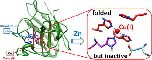 Nedd, S.; Redler, R. L.; Proctor, E. A.; Dokholyan, N. V.;* Alexandrova, A. N.* Cu,Zn-Superoxide Dismutase without Zn is Folded but Catalytically Inactive. 2014, J. Mol. Biol., 426, 4112-4124. Download